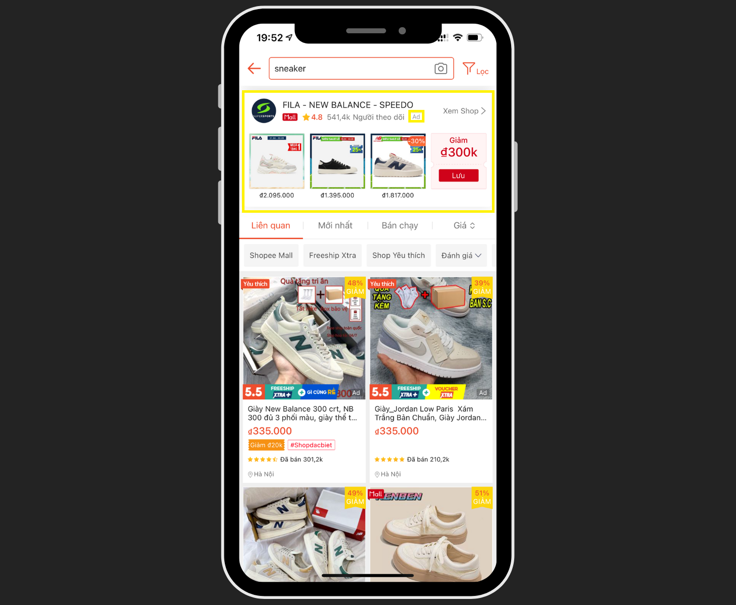 E-commerce Shop Ads là định dạng quảng cáo Tìm kiếm Shop khi Người mua tìm kiếm từ khóa có liên quan đến quảng cáo của bạn. (Lưu ý hiện tại chỉ áp dụng cho Shop Yêu Thích, Shop Yêu Thích+, Shopee Mall, Shop có đánh giá tốt và doanh thu cao được Shopee lựa chọn)