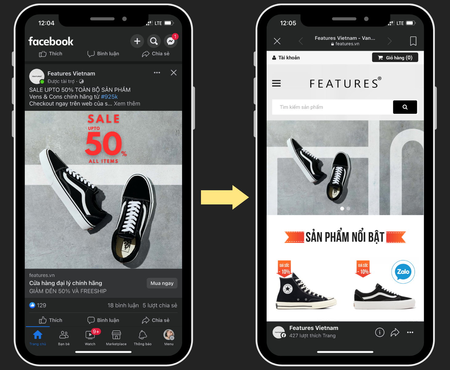 Facebook Click To Website là Quảng cáo hiển thị trên Facebook với nội dung và một hình quảng cáo đơn hoặc nội dung và 10 hình ảnh quảng cáo nhỏ. Khách hàng click vào quảng cáo sẽ đi trực tiếp đến website của công ty để tiến hành mua sản phẩm/dịch vụ. Vị trí hiển thị: trên Bảng tin Facebook, Bài viết tức thì trên Facebook, Facebook Marketplace, Video trong luồng trên Facebook, Facebook Stories, Cột phải... Mục tiêu Marketing phù hợp: Thu hút lượng traffic của user tiềm năng về website/landing page/App để xem thông tin chi tiết Hình thức tính phí: CPC (Cost per click - Chi phí được tính trên lượt nhấp vào quảng cáo) / Conversion (Chi phí cho một chuyển đổi) |