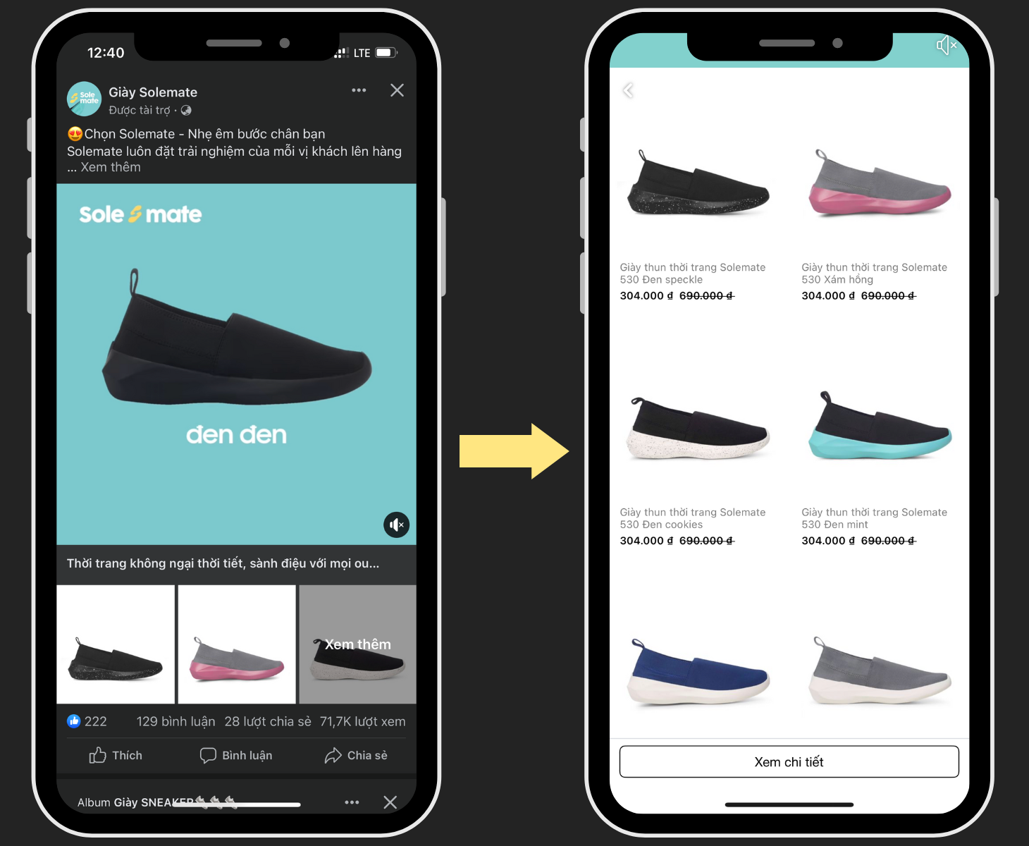 Facebook CPAS là quảng cáo liên kết với các trang web thương mại điện tử, cho phép các thương hiệu cá nhân hoá các mẫu quảng cáo, tăng doanh số bán hàng trên mạng xã hội. Vị trí hiển thị: trên Bảng tin Facebook Mục tiêu Marketing phù hợp: Hình thức tính phí: CPC (Cost per click - chi phí cho một lượt click) |