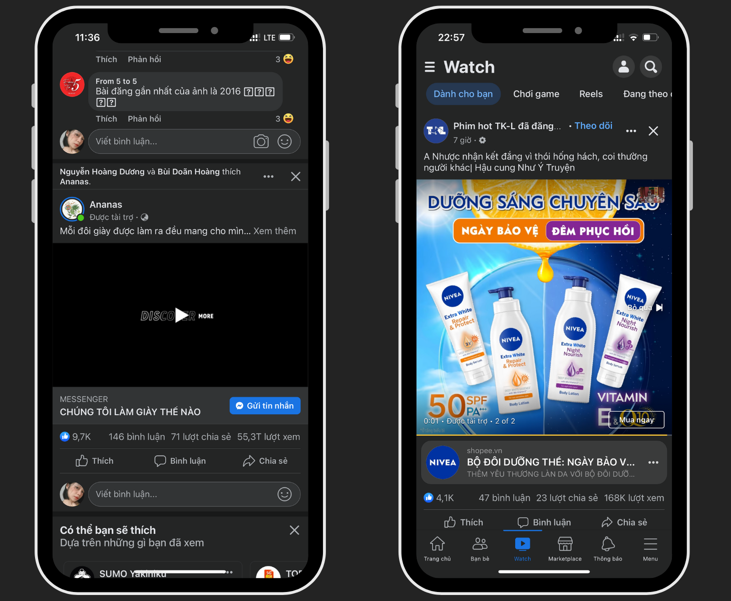 Facebook Video là hình thức quảng cáo sản phẩm/dịch vụ/thương hiệu thông qua video. Vị trí hiển thị: quảng cáo hiển thị trên nhiều vị trí khác nhau. Mỗi vị trí sẽ có thời lượng video tiêu chuẩn. + Trên Bảng tin Facebook/Bài viết tức thì trên Facebook/Facebook Marketplace: Tối đa 240 phút. + Video trong luồng trên Facebook: 5 giây đến 10 phút. + Facebook Stories: 1-15 giây Mục tiêu Marketing phù hợp: + Thu hút lượng lượt xem video của user tiềm năng. + Đẩy mạnh branding thương hiệu Hình thức tính phí: CPV (chi phí cho 1 lượt xem 3s hoặc 15s) |