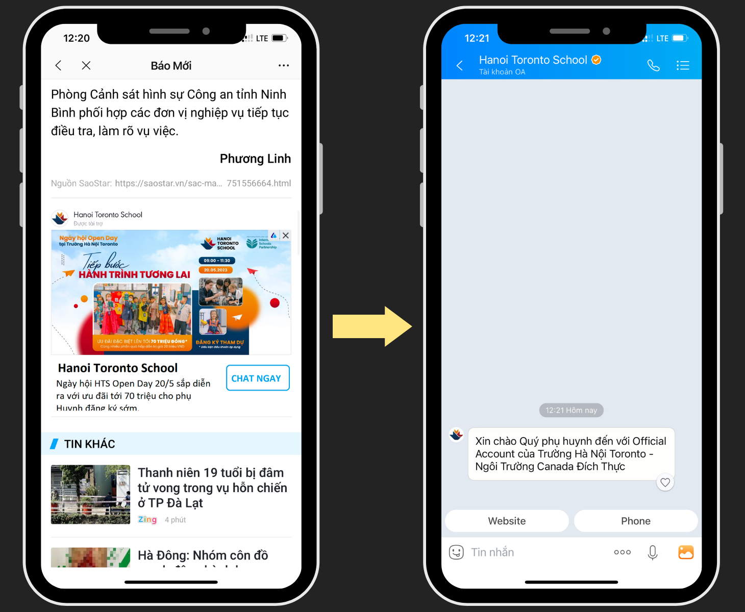 Quảng cáo tin nhắn (Message Ads) trên Zalo Ads là hình thức hỗ trợ nhà quảng cáo tương tác trực tiếp với khách hàng tiềm năng qua tin nhắn hộp thoại trên Zalo. Qua đó, nhà quảng cáo có thể thu thập thông tin khách hàng, tư vấn trực tiếp 1:1, hoặc chốt đơn hàng trực tiếp ngay trên Zalo. Vị trí hiển thị: hiển thị luân phiên trên Zalo app (Zalo News Feed, Zalo Article) và Zalo Network (BaoMoi, ZingNews …)