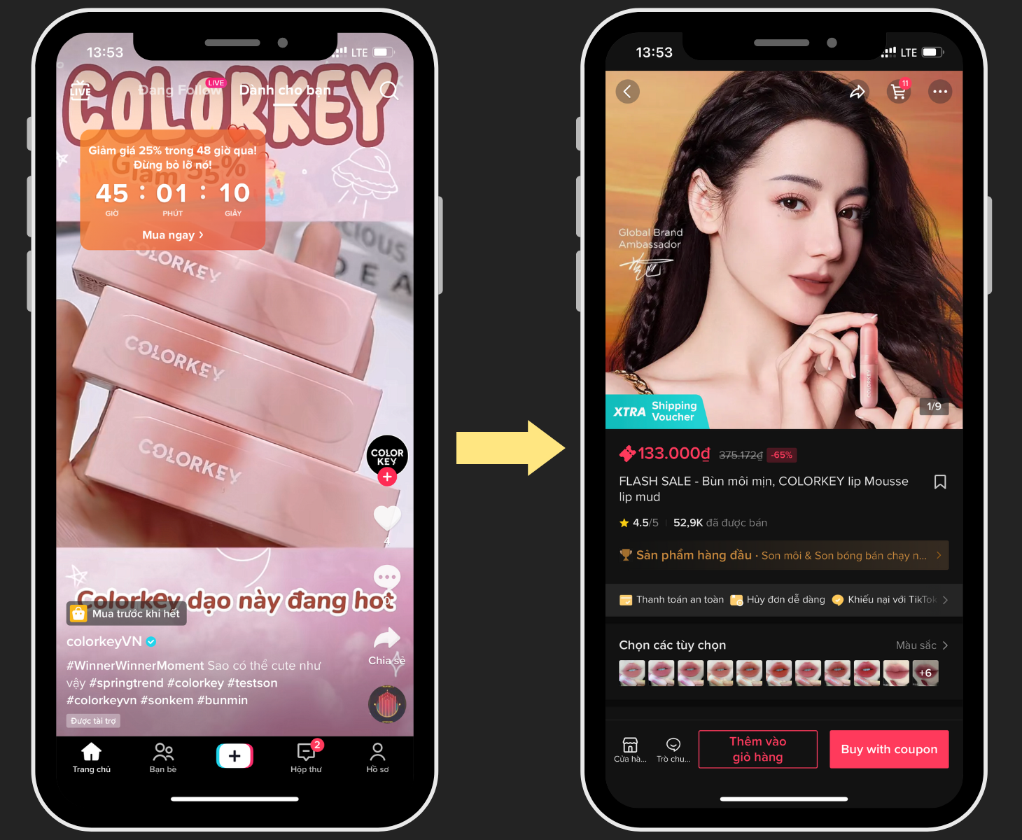 Tiktok Conversion Là quảng cáo xuất hiện trong luồng newfeed của người dùng Tiktok. Với định dạng kích thích kêu gọi hành động xem thêm, mua ngay, tải app ngay... + Vị trí hiển thị: Xuất hiện ngẫu nhiên trong 130 video giữa luồng video của người dùng + Mục tiêu MKT phù hợp: Tối ưu hóa phát sinh lượt chuyển đổi với thương hiệu. Tùy từng mục tiêu chiến dịch sẽ có cách tính chuyển đổi khác nhau: traffic website, mua hàng, tải app... + Hình thức tính phí: CPC/Conversion (tính phí khi người dùng click vào quảng cáo hoặc tính phí cho một lượt chuyển đổi) |
